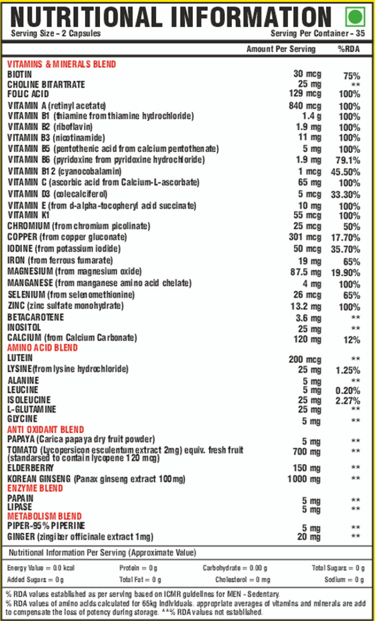 4-in-1 formula: Vitamins & Minerals + Antioxidants + Amino Acids + Enzymes