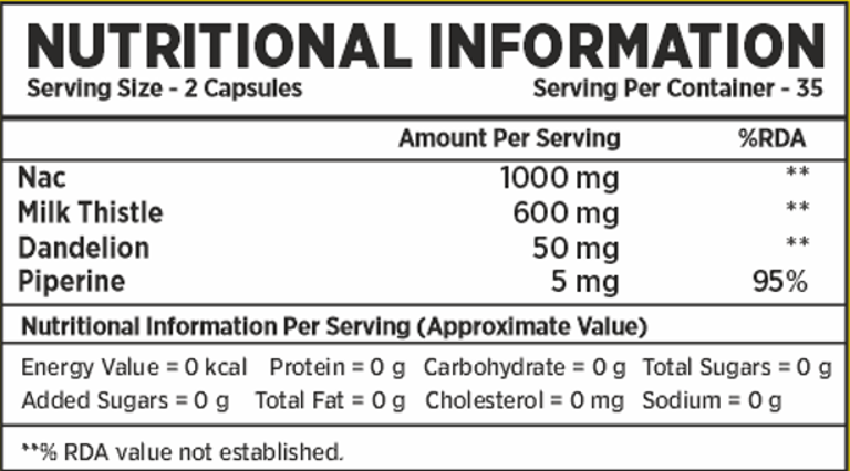 NAC (N-Acetyl Cysteine) – 1000 mg — A powerful antioxidant precursor that helps neutralise harmful free radicals and supports the body's natural detox pathways.